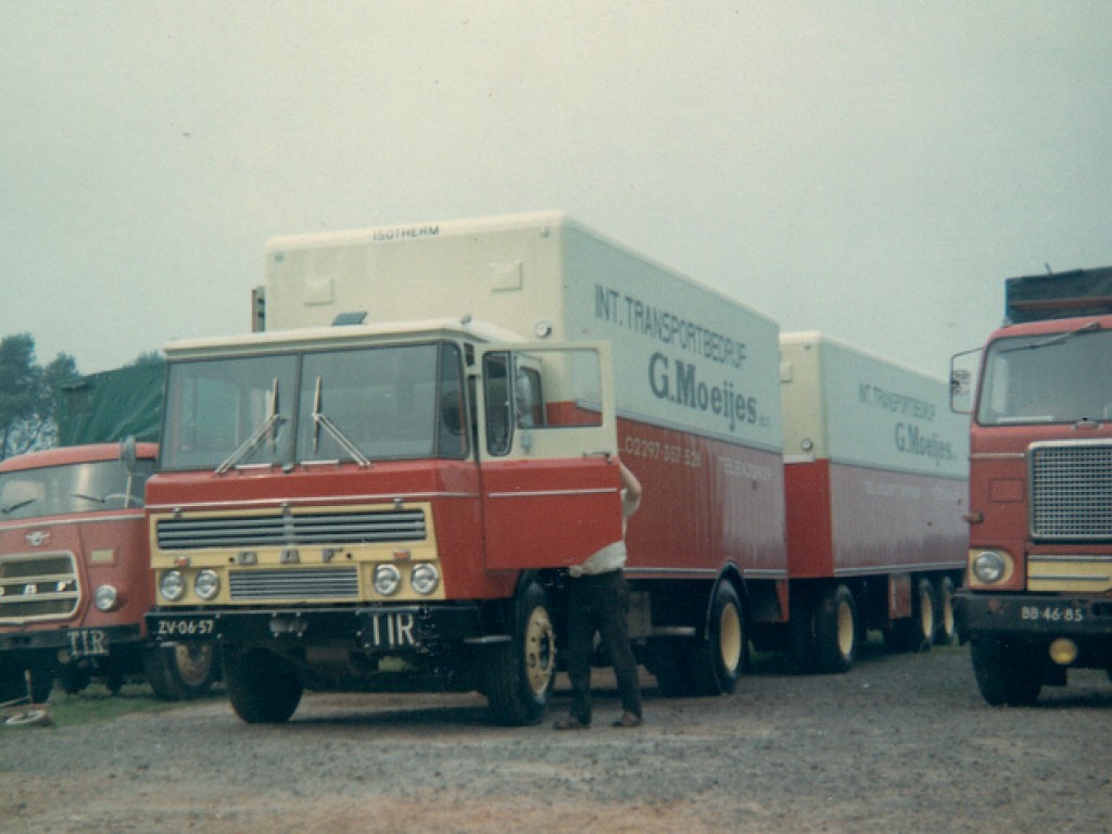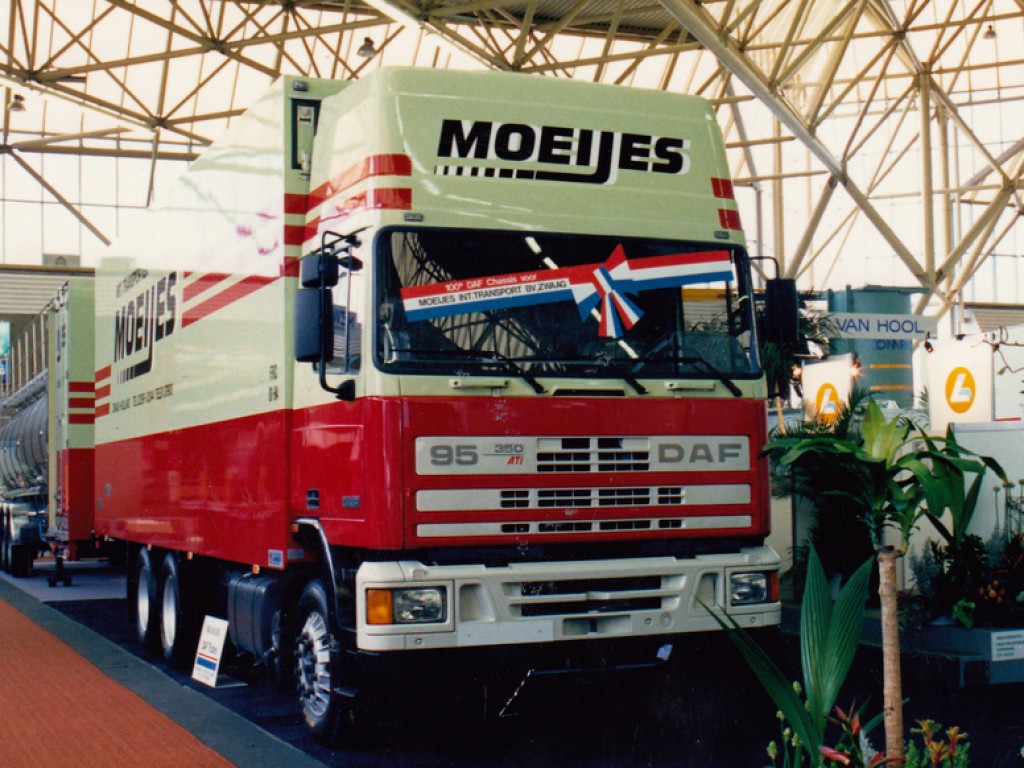 In 1988 leverde DAF zijn 100ste wagen aan Moeijes af. In de jaren daarop volgden er nog velen. In 1991 werd de 150ste DAF geleverd. Eind jaren ’90 werden ook vrachtauto’s van andere merken gekocht waarmee nr 200 werd bereikt. Intussen was in 1984 in Zwaag een nieuwe garage met 1000 m2 opslagruimte gebouwd. Deze opslagruimte is later in 2 fasen uitgebreid naar 8000 m2 deels voorzien van dockshelters. Inmiddels zijn de vestigingen in Born en Aken gesloten omdat het bananenvervoer vanaf Antwerpen steeds minder belangrijk werd.