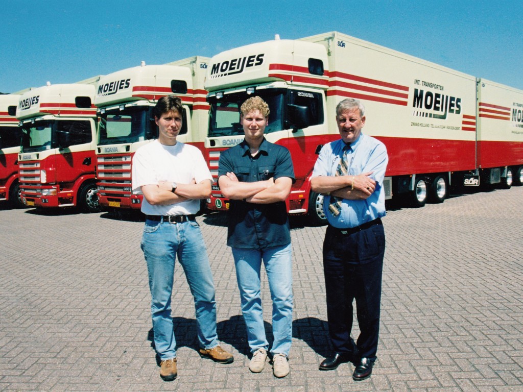 In de jaren ’90 diende de 4e generatie Moeijes zich aan. Eerst René en enkele jaren later Daniël. Het bedrijf passeerde zijn 80-jarige bestaan. Het grootvolume- koelconcept werd in de jaren ’90 verder doorontwikkeld. Vooral het eigen gewicht van de vrachtwagencombinaties werd flink verlaagd. Hierdoor werden de combinaties niet alleen geschikt voor het transport van bloemen, planten en volumegoederen, maar ook geschikt voor het groente en fruittransport. In 1998 werd een nieuwe uitvinding gedaan. Een nieuwe DAF85-trekker in 3 gedaantes: autoambulance(met lier), motorwagen met aanhangwagencombinatie en normale trekker. Hiermee worden 1 of 2 andere trekkers meegenomen naar Spanje of Italië om van daar nieuwe trailers, geladen met groente of fruit weer mee terug te nemen. Een jaar later zijn 3 multifunctionele trailers ontwikkeld voor het vervoer van trucks en andere voertuigen of machines. Daarnaast konden op deze trailers met een speciaal hydraulisch systeem eenvoudig nieuwe koellaadbakken worden gemonteerd. Deze laadbakken werden vanaf leveranciers uit Spanje en Italië met deze trailers naar verschillende Europese bestemmingen vervoerd.